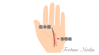 運命線が一本の線ではなく、途中で切れて変化して伸びている場合は、生き方や住む場所、仕事などが変わる暗示であり、この変化の中には離婚も含まれます。